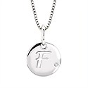Diva Diamonds® Letter F Pendant In Sterling Silver With .01 Ct. Diamond With 18" Box Chain (Adjustable To 16") And Lobster Claw Clasp Sterling Silver Diamond Initial F Pendant with 16" Chain and 2" Extender