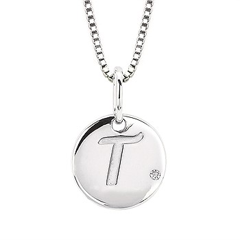 Diva Diamonds® Letter T Pendant In Sterling Silver With .01 Ct. Diamond With 18" Box Chain (Adjustable To 16") And Lobster Claw Clasp Sterling Silver Diamond Initial T Pendant with 16" Chain and 2" Extender