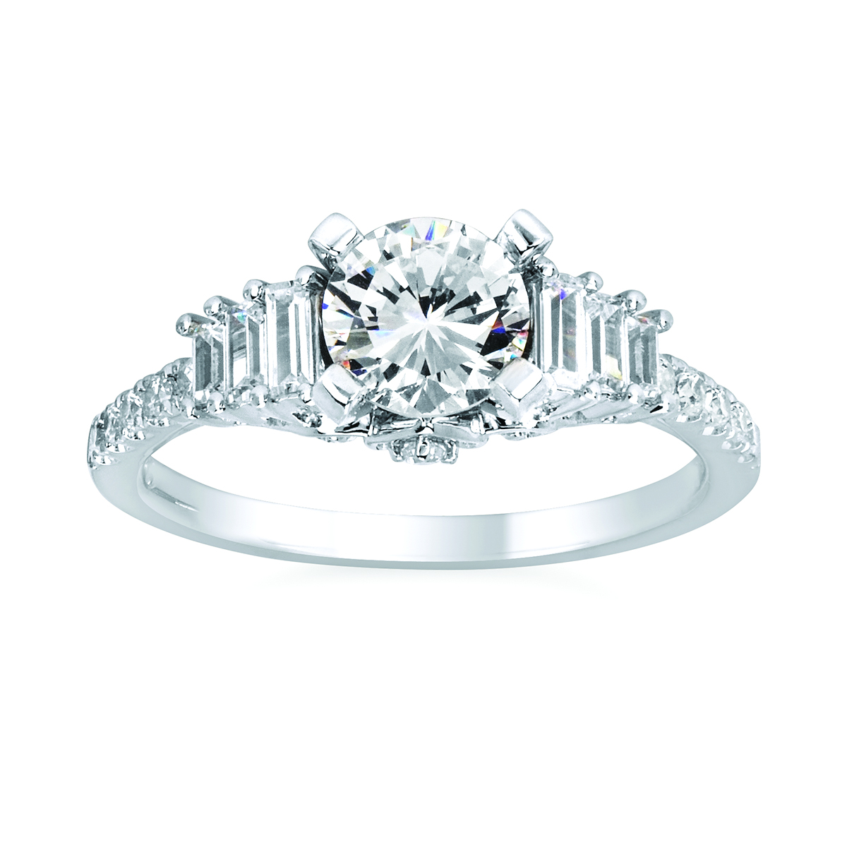 Engagement Ring Forever Elegant® 3/8 Ctw. Diamond Semi Mount shown with 1 Ct. Round Center Diamond in 14K Gold
