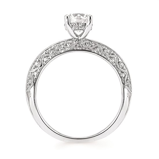Engagement Ring 1/5 Ctw. Diamond Semi Mount with Millgrain Detail shown with 3/4 Ctw. Round Center Diamond in 14K Gold