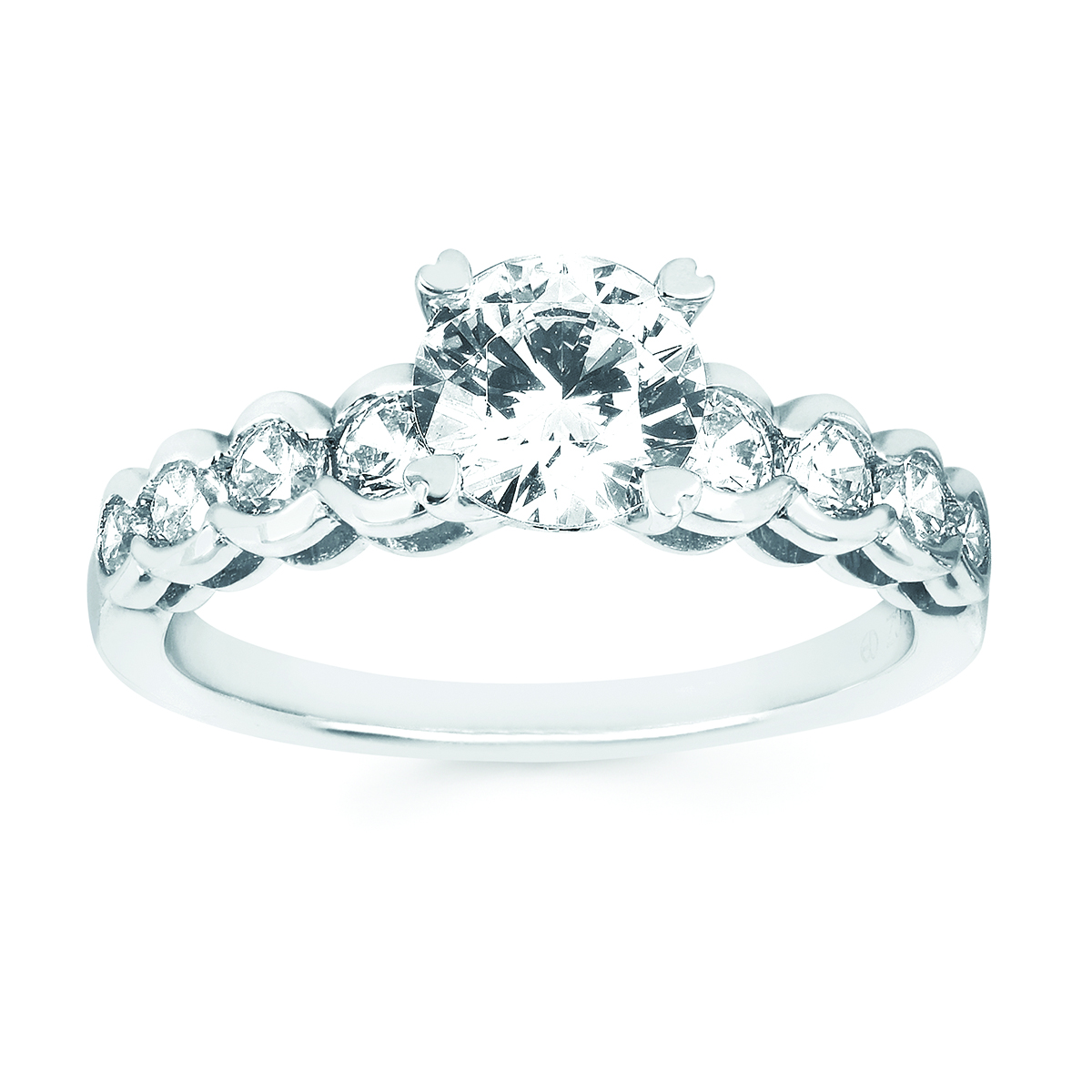 Engagement Ring Modern Bridal: 1/2 Ctw. Diamond Semi Mount shown with 1 Ct. Round Center Diamond in 14K Gold