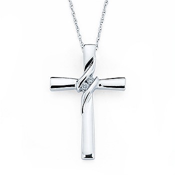 .02 Ctw. Channel Set Diamond Cross Pendant In 14K Gold With 18" Chain